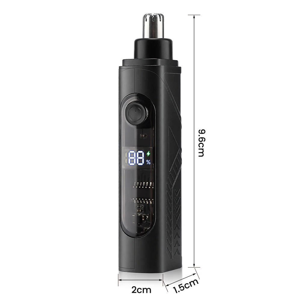 3. Compact and stylish, the portable ear and nose hair trimmer boasts a mini design and an LED display screen for a modern aesthetic. Lightweight and easy to carry, it’s perfect for personal use or as a gift.